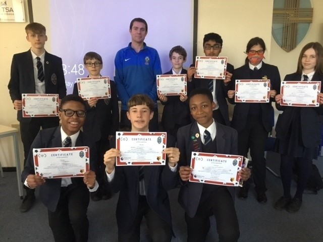 A group of Year 9 students were selected to take part in Watford Football Club’s Premier League Enterprise Programme to inspire students. The students split into 2 teams that explored everything about Watford FC and what goes on behind the scenes. Back in September they visited the stadium in Vicarage Road where they explored all aspects from the ticket office, merchandise store, sensory room, press conference ticket office etc.