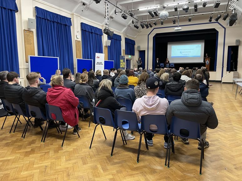 The Apprenticeship Evening began with an initial presentation by Anna Morrison CBE, an eminent expert in the field of Apprenticeships who works with both the employers and training providers and is currently leading a national campaign to inform parents of apprenticeships. This was followed by talks from James L and Charlotte S-B regarding their apprenticeship journeys with Monarch Airlines and KPMG.