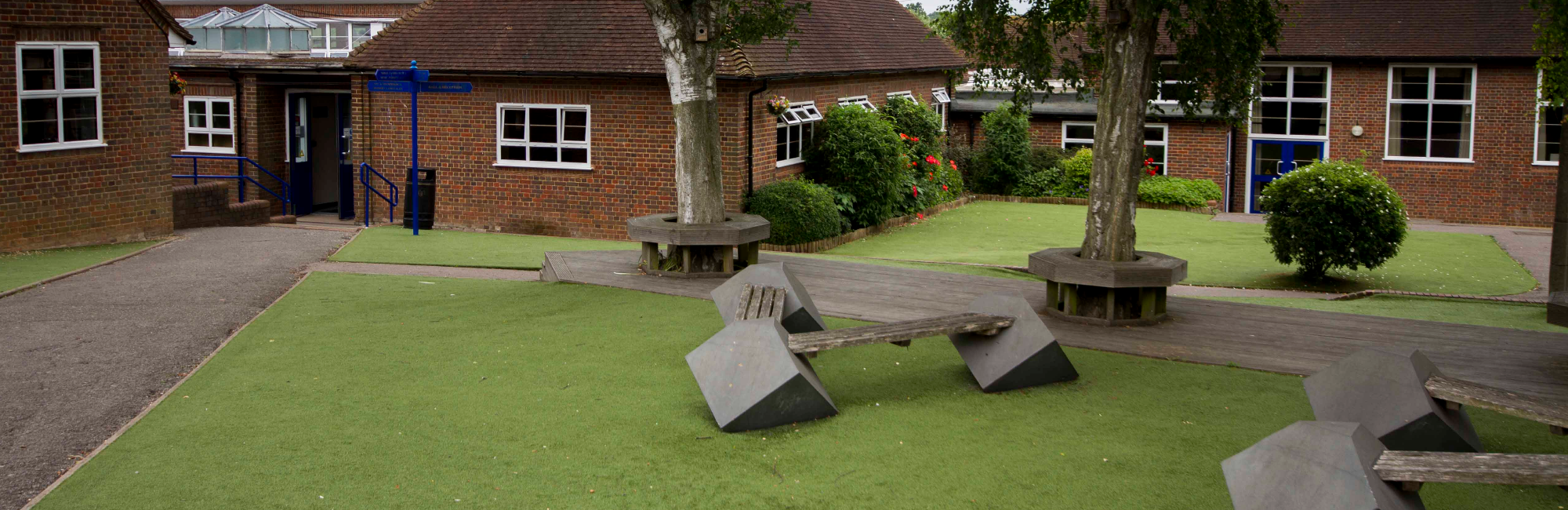 This was a huge project which transformed a large area of barren land in the middle of the school into a beautiful place for students and staff to enjoy. This was achieved by covering the area with artificial turf, building decking and seating around three beautiful silver birch trees, planting up the flower beds with shrubs and building a large raised bed in the centre of the site. In addition, a student has built some seating in collaboration with Jarvis Contracting and students have painted murals and made sculptures.